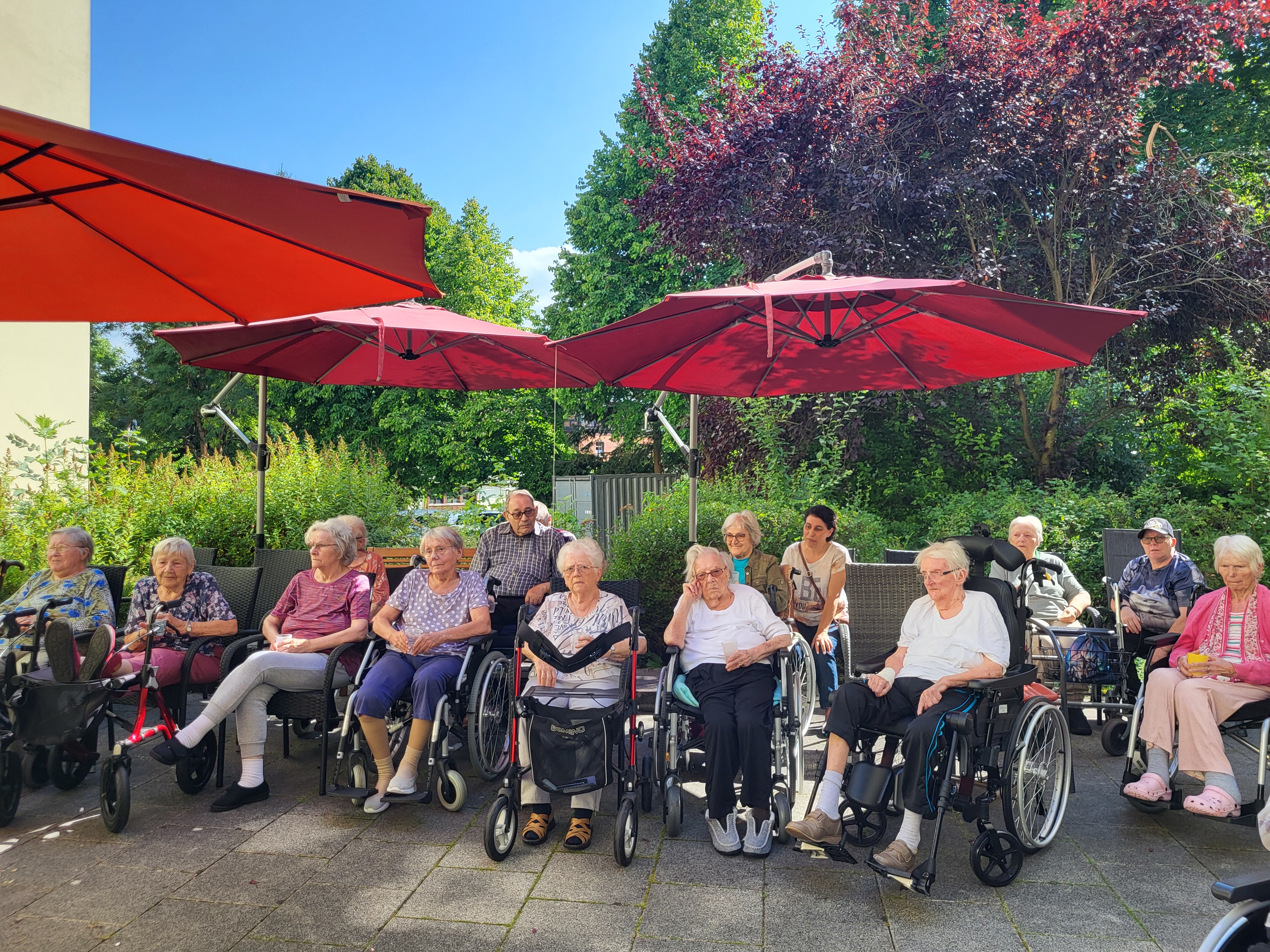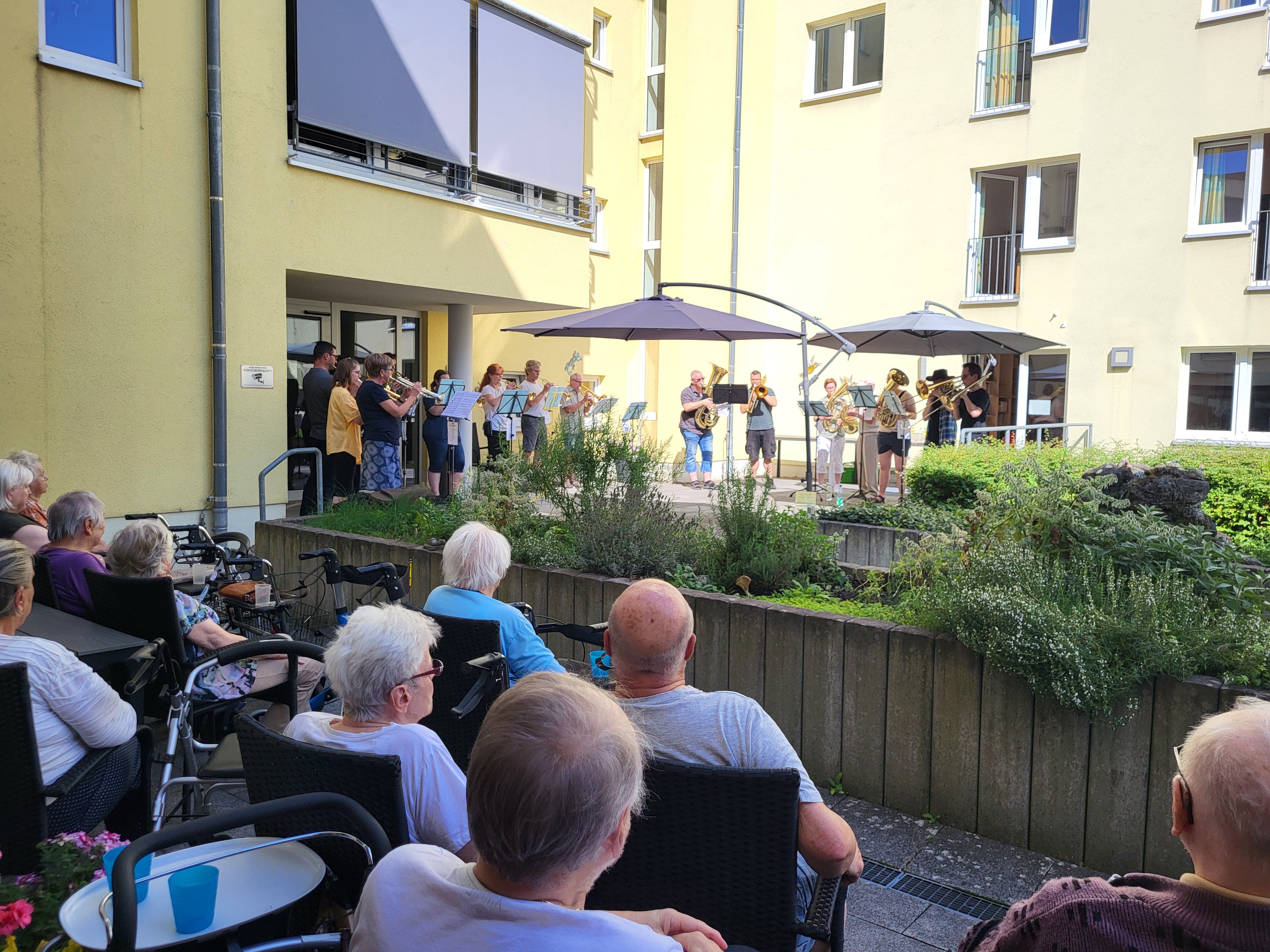 Bei herrlichem Sonnenschein versammelten sich alle im Außenbereich des Seniorenparks, um den festlichen Klängen des Posaunenchors zu lauschen.