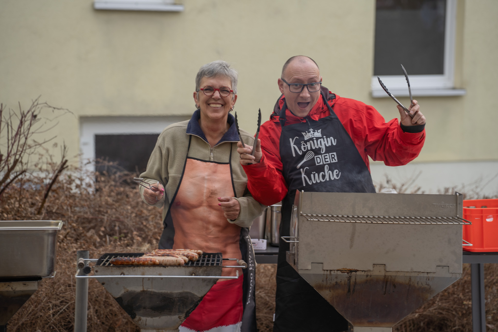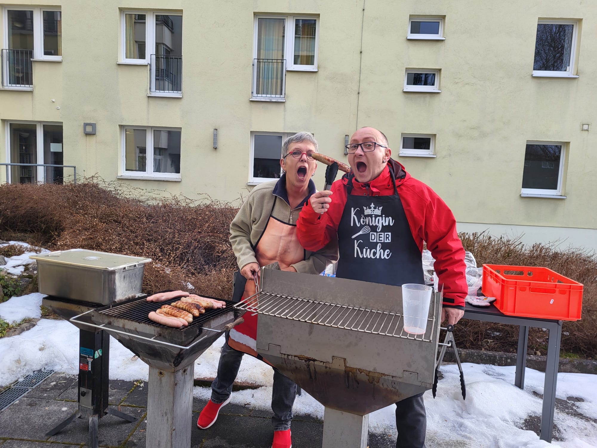 Währenddessen brutzelten draußen schon die Thüringer Rostbratwürste, mit viel Spaß vorbereitet vom Team der sozialen Betreuung.