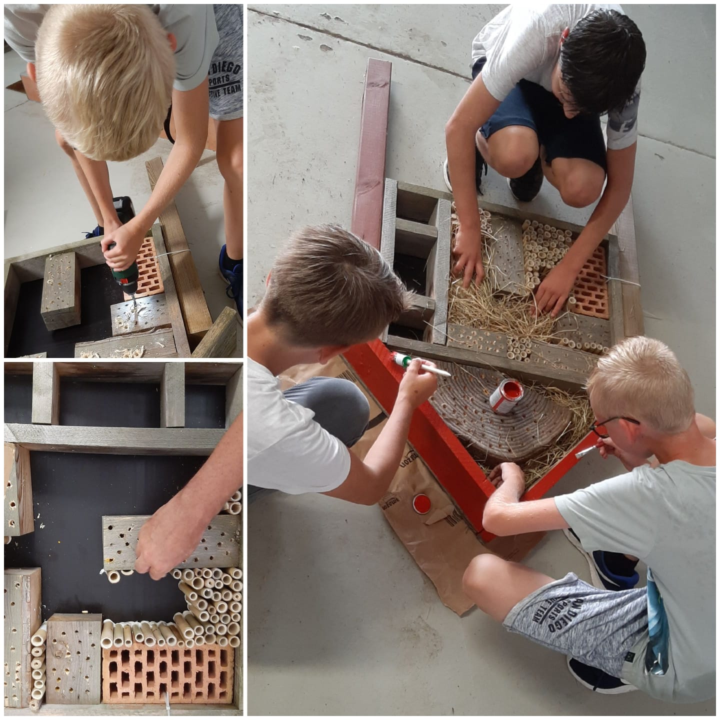 So wurden auf dem Gelände der beiden DRK Kitas in Suhl-Nord und Wichtshausen zahlreiche Hochbeete und ein großer Kompost gebaut, eine Blumenwiese für nächstes Frühjahr vorbereitet, vielfältige Nistmöglichkeiten für Insekten geschaffen und andere nützliche Kleinigkeiten für den Naturschutz gestaltet.