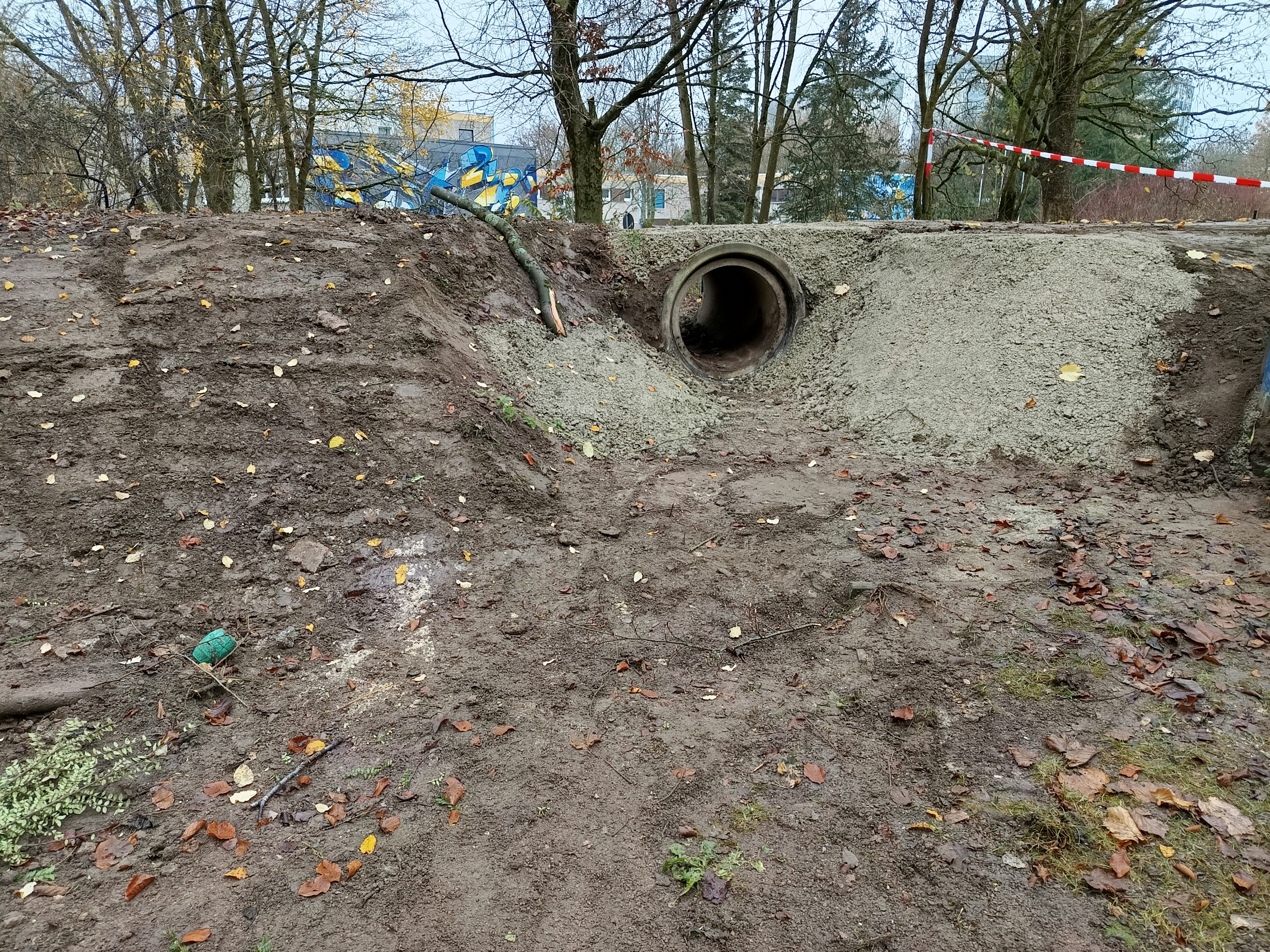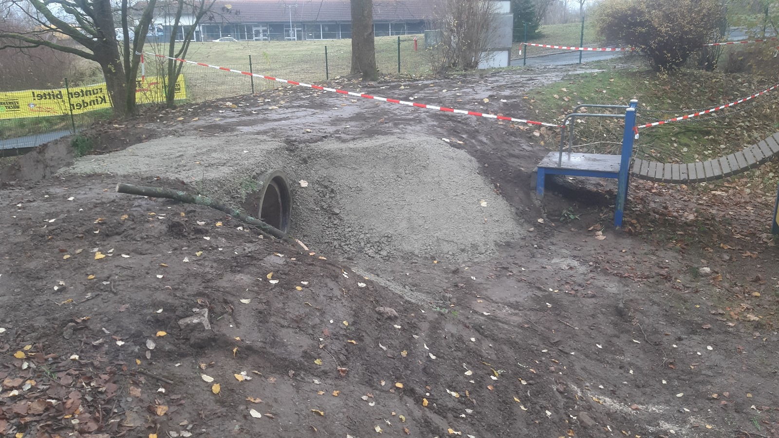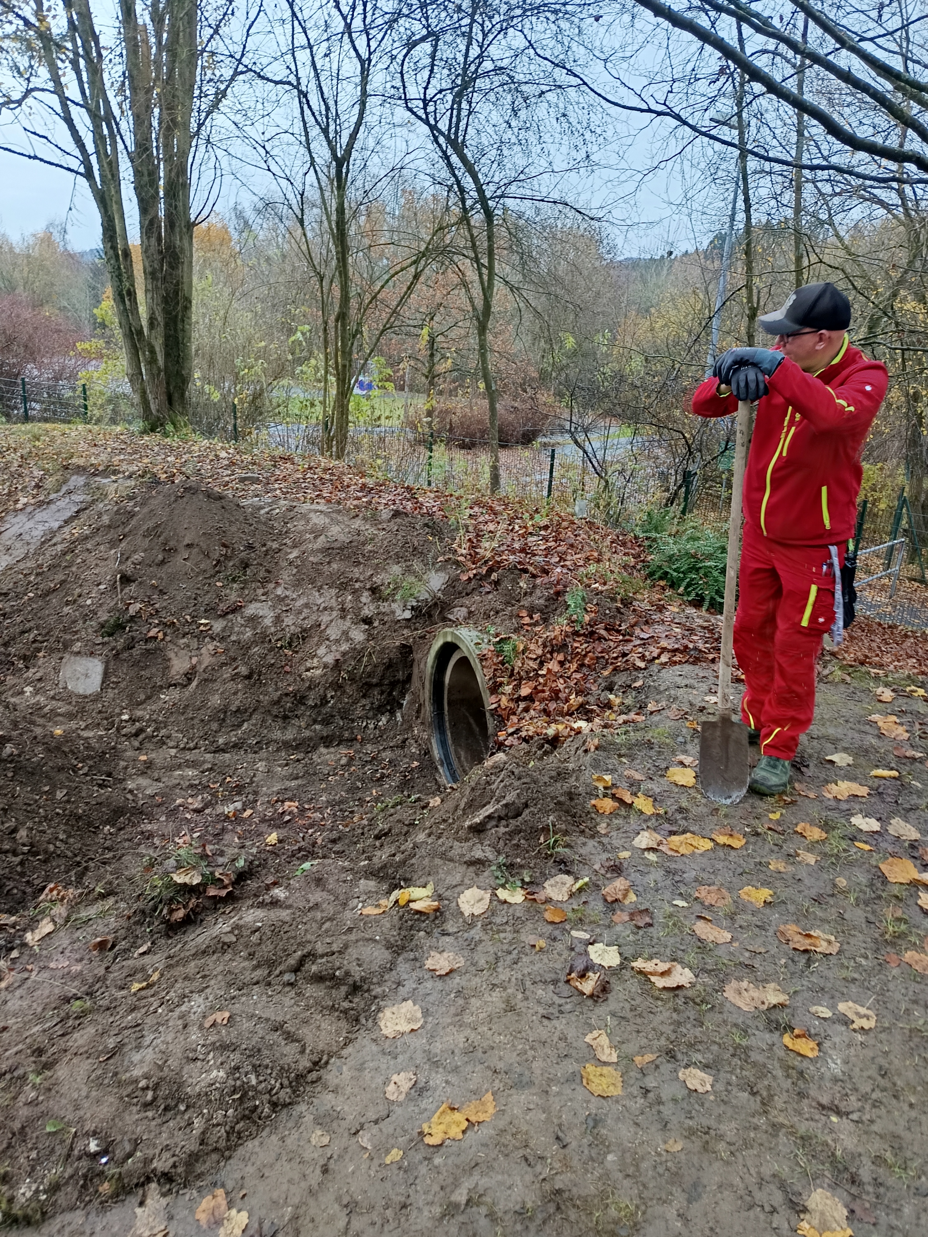 Ziel des Arbeitseinsatzes war es, die Erde um die Röhre aufzufrischen und zu stabilisieren, damit die Kinder wieder sicher und voller Spaß in und durch die Röhre krabbeln können.