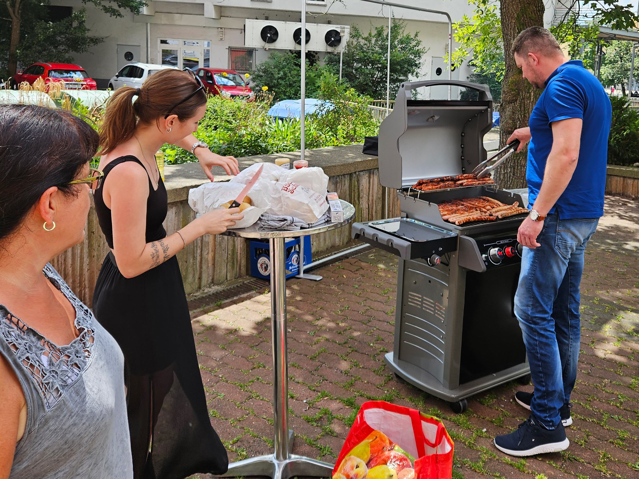 Um diesen Erfolg gebührend zu feiern, versammelten sich die Mitarbeiter der Sozialstation am vergangenen Dienstag im Innenhof der Einrichtung. Bei erfrischenden Getränken und leckeren Bratwürsten, die vom Vorstandsvorsitzenden Sebastian Wächter gegrillt wurden, wurde die Bestnote gefeiert. Die entspannte Atmosphäre bot den Mitarbeitern die Gelegenheit, gemeinsam den außergewöhnlichen Teamgeist und die kollektiven Anstrengungen zu würdigen, die zu diesem Erfolg führten.