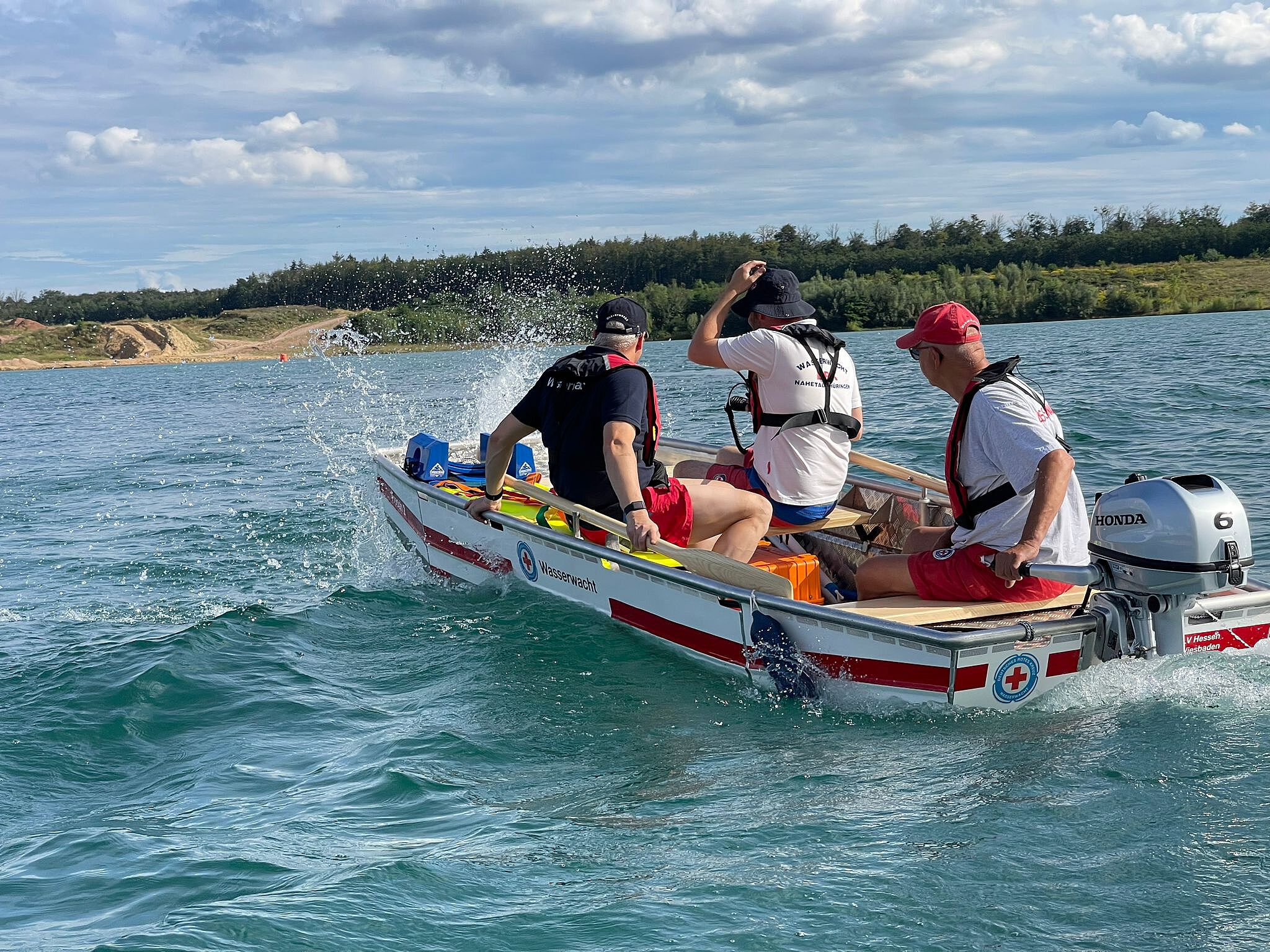 Am 18. August 2024 unterstütze die Wasserwacht Nahetal, gemeinsam mit einem Kameraden aus Meiningen, bei der Absicherung des Ironman-Triathlons am Langener Waldsee in Frankfurt am Main.