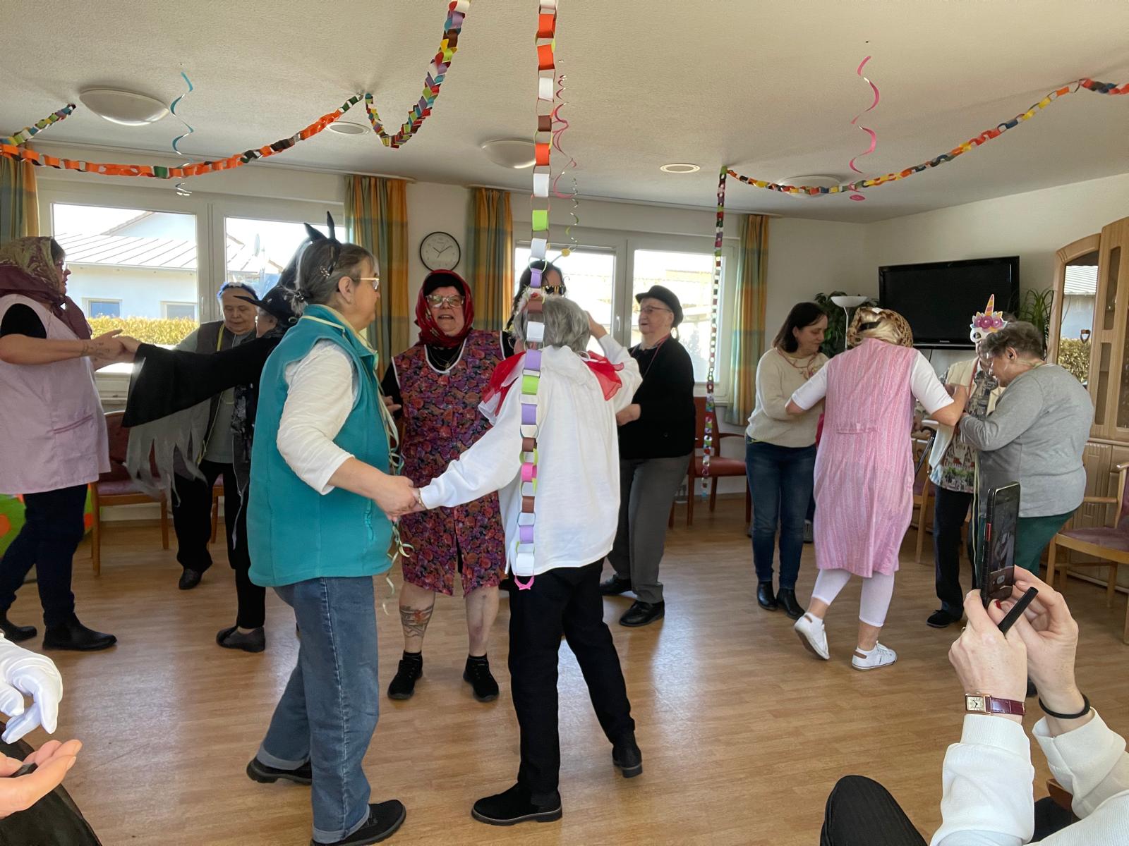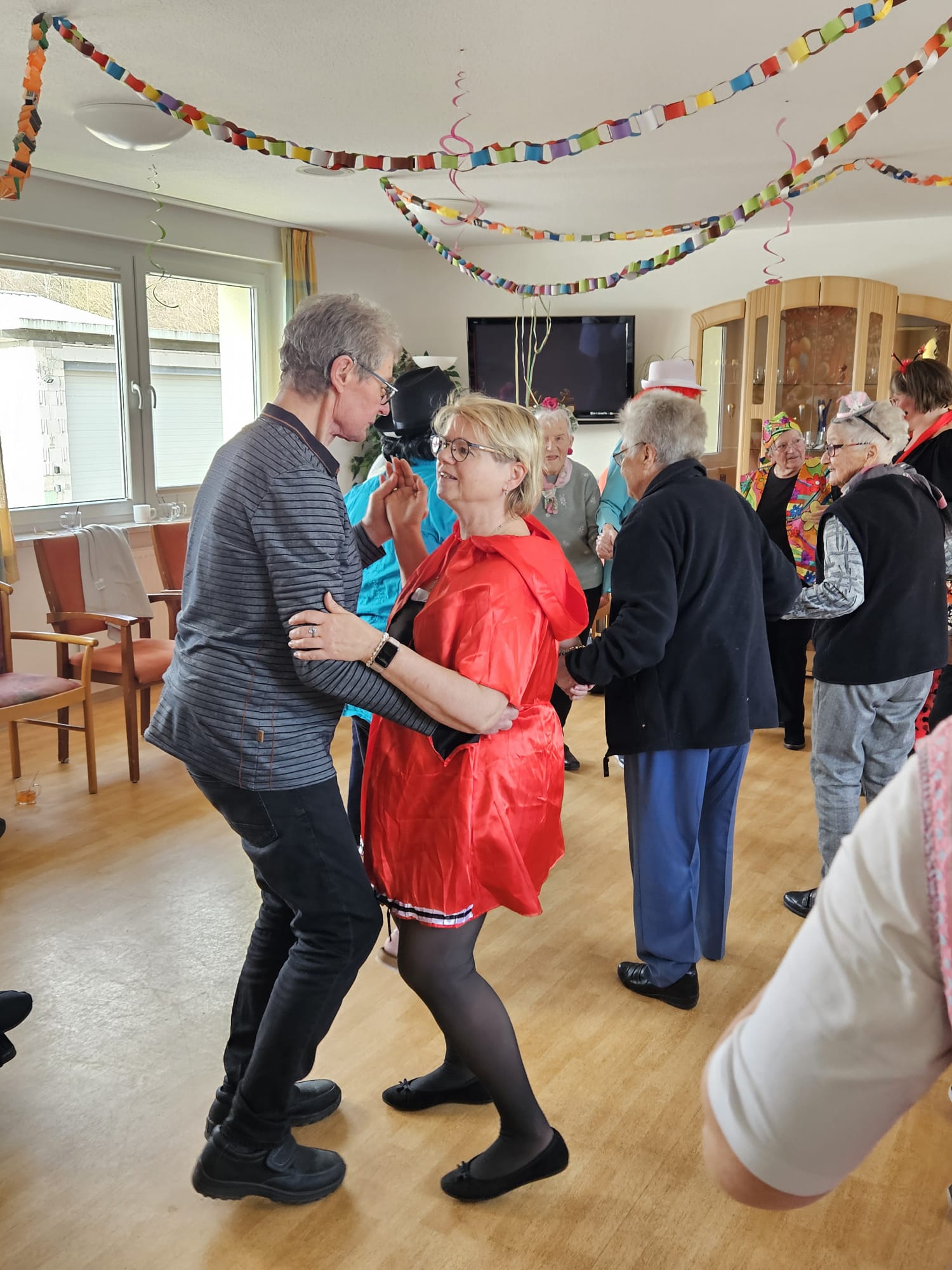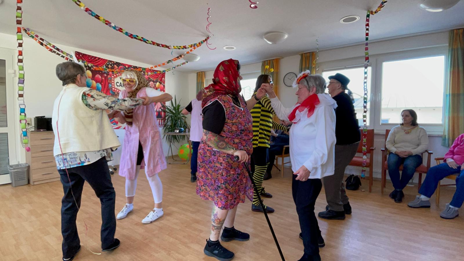 Nach dem gemeinsamen Frühstück verkürzte das Pflegepersonal den Tagesgästen die Zeit bis zum Mittagessen mit zwei selbst einstudierten Tänzen und zwei Büttenreden.