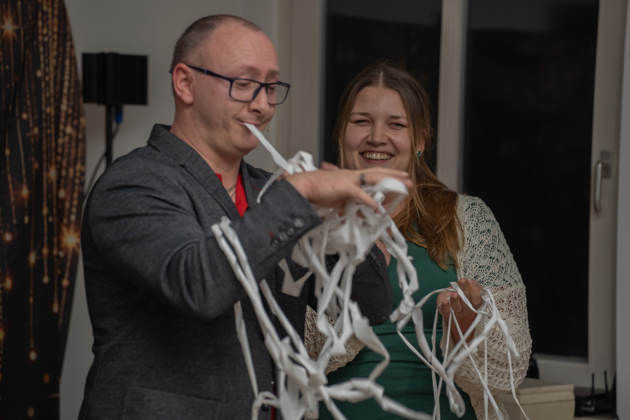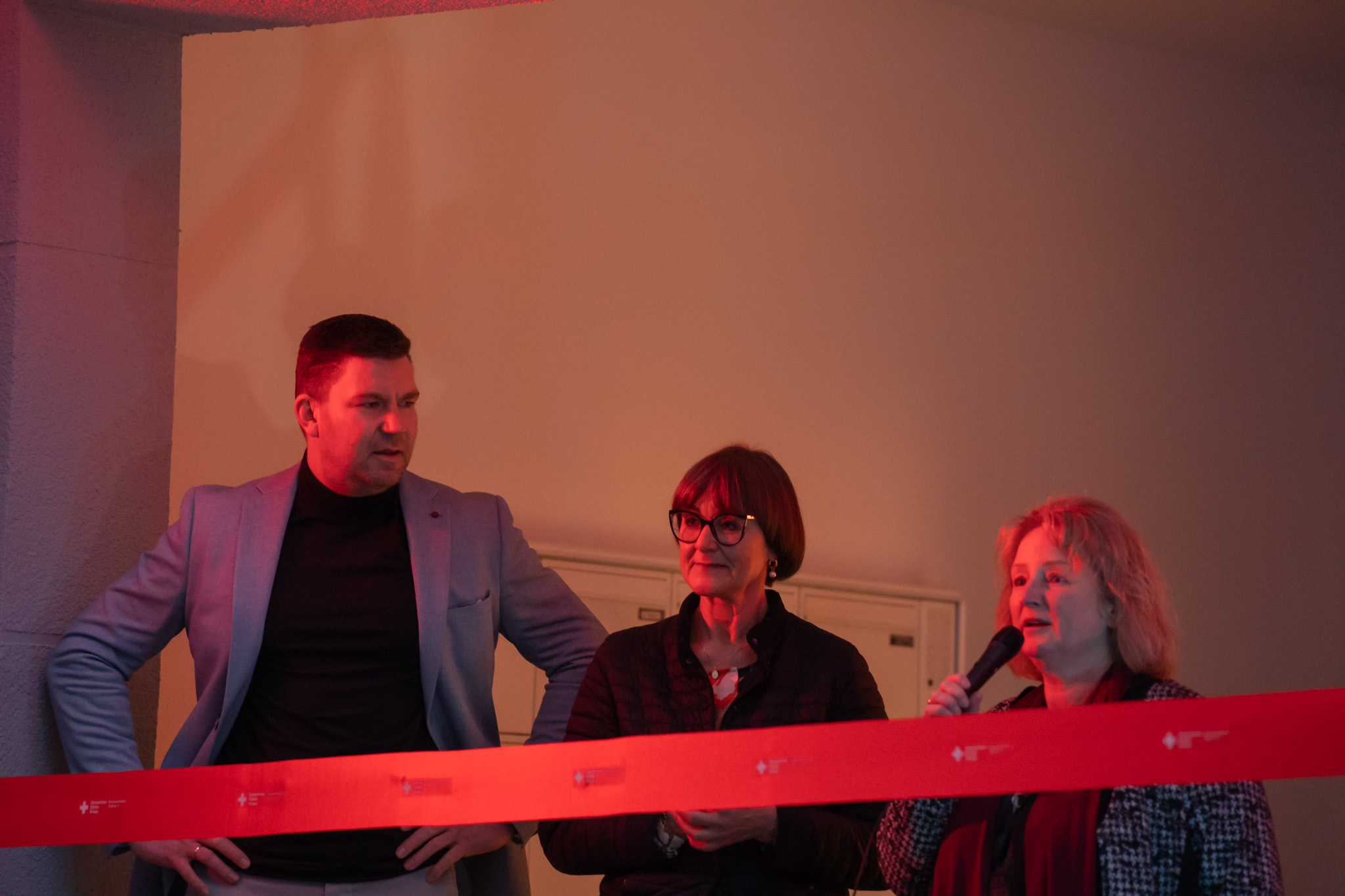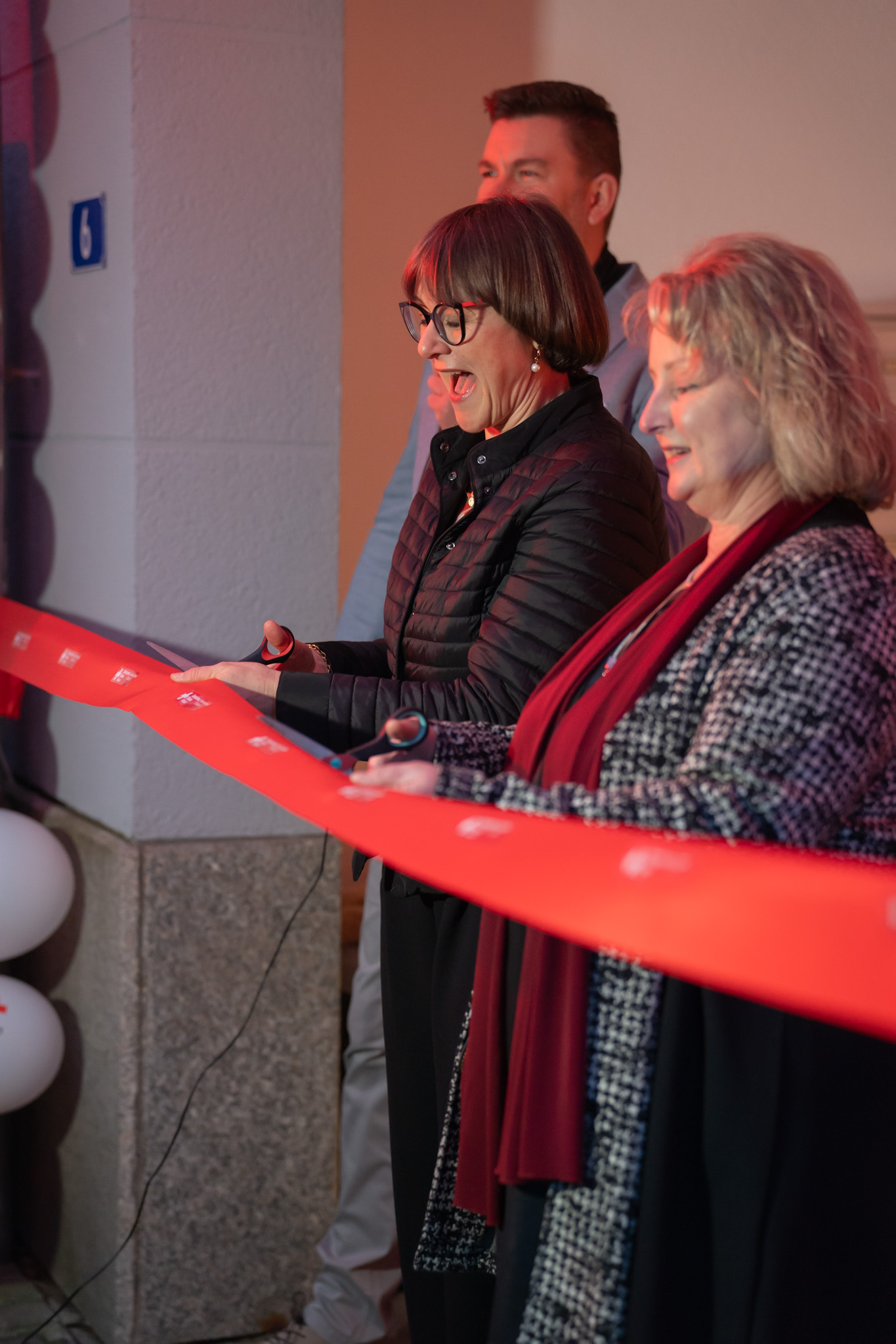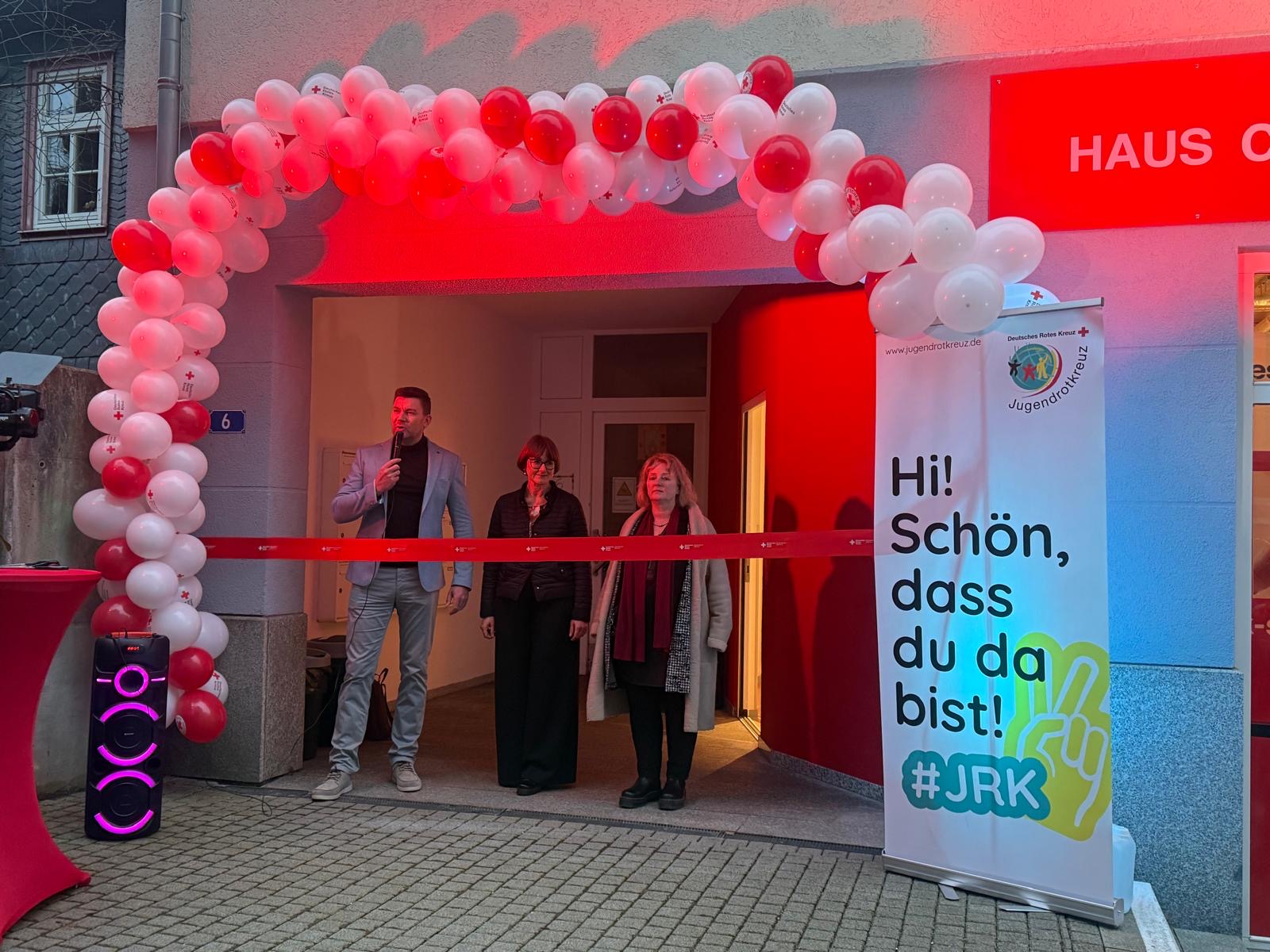 Im Anschluss an die Ansprachen wurde das symbolische Band von Frau Luck und Frau Bauerfeind durchschnitten und der DRK-Kompass offiziell eröffnet. Konfetti-Kanonen, ausgelöst durch die Gäste, unterstrichen den feierlichen Charakter des Moments.