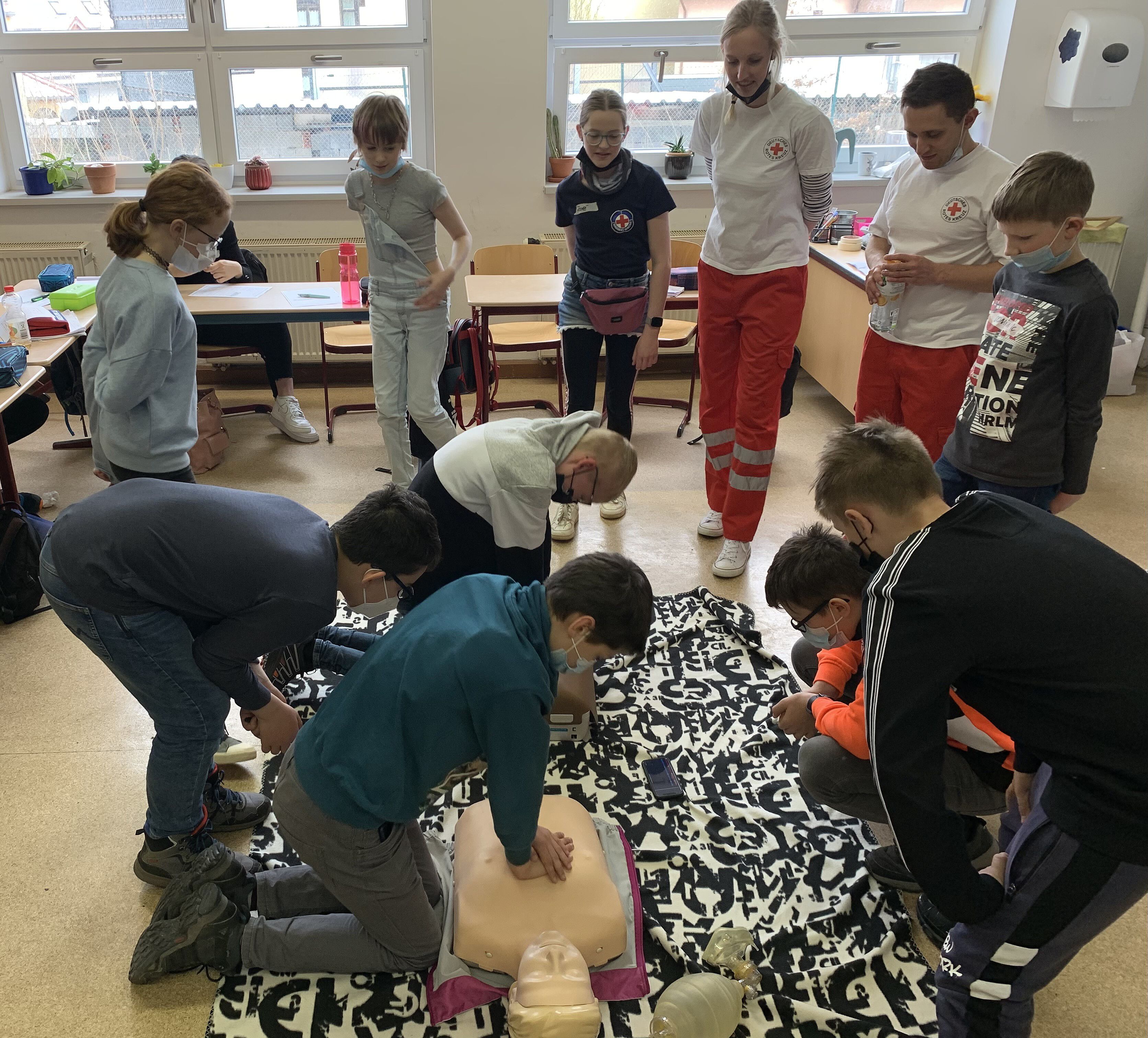 Des Weiteren haben auch die Schüler und Schülerinnen aus höheren Klassen die Möglichkeit, etwas zum Thema Erste Hilfe zu lernen. Deshalb bieten wir aktuell den Kurs „Herzensretter Bronze“ für die Klassenstufen 5 und 6 an. Hierbei lernen die Kinder im Notfall richtig zu reagieren, üben die Herzdruckmassage und werden somit zu „Herzensrettern“ ausgebildet. Unter dem Motto „Prüfen-Rufen-Helfen“ können erste Erfahrungen in der Ersten Hilfe und der Wiederbelebung gesammelt werden, um mögliche Hemmschwellen zu überwinden und bereits Kinder zum Helfen zu motivieren - denn im Ernstfall zählt jede Sekunde.