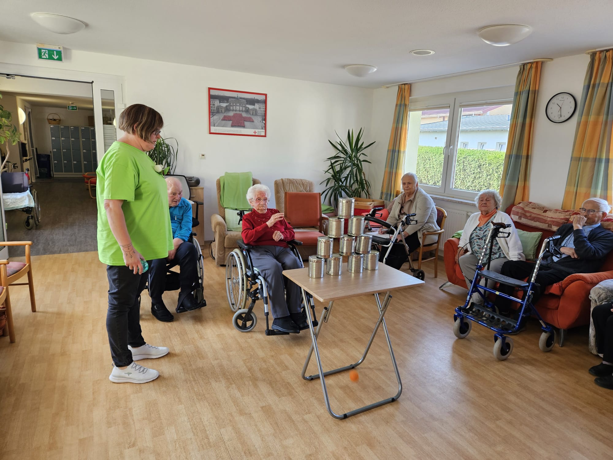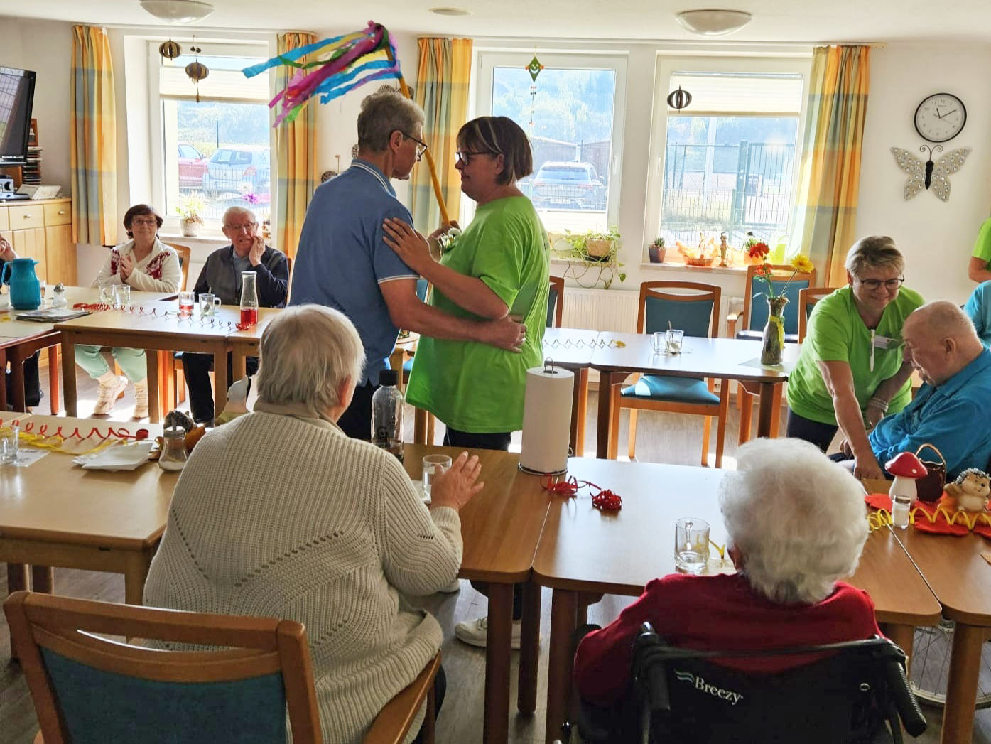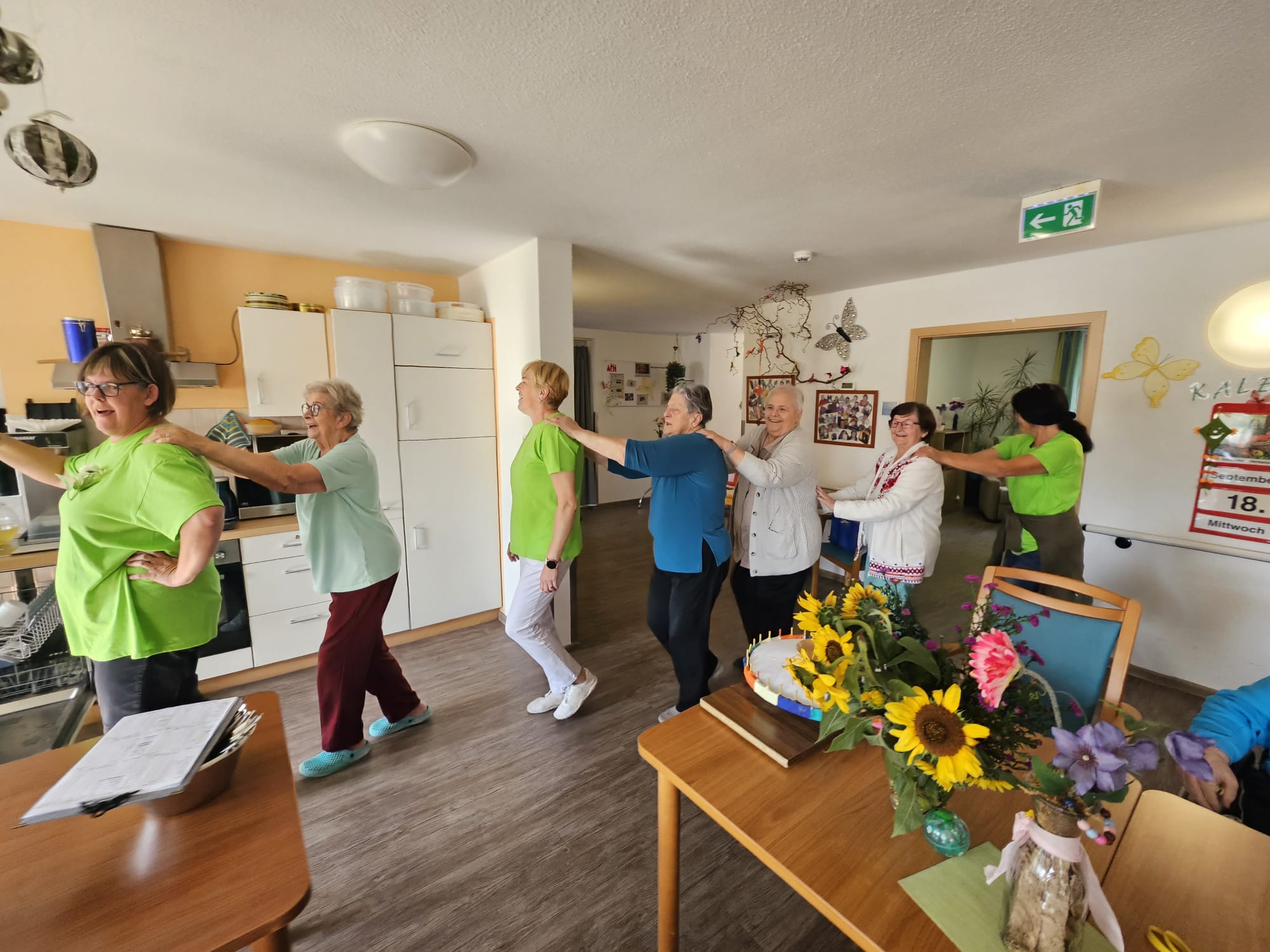 Schon am Morgen des 18.09.2024 wurden die Tagesgäste herzlich an der Eingangstür der DRK Tagesbetreuung „Herbstrose“ in Schleusingen, Helmut-Kohl-Straße 13, empfangen.