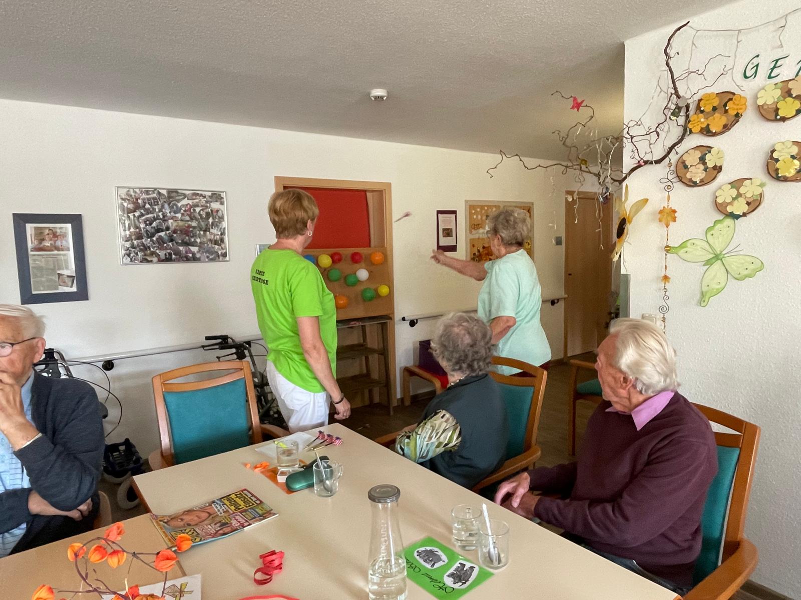 Die Tagesgäste spielten, wie auf einer richtigen Kirmes, eine Runde „Dosen werden“, „Luftballon abschießen“ oder konnten am Glücksrad drehen. Dies machte allen Beteiligten sehr viel Spaß.