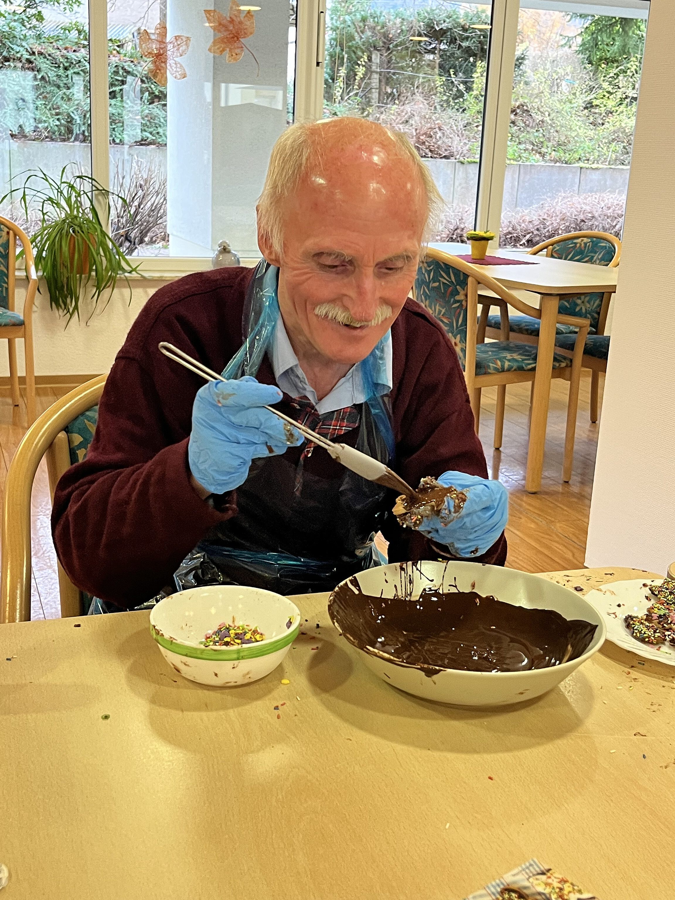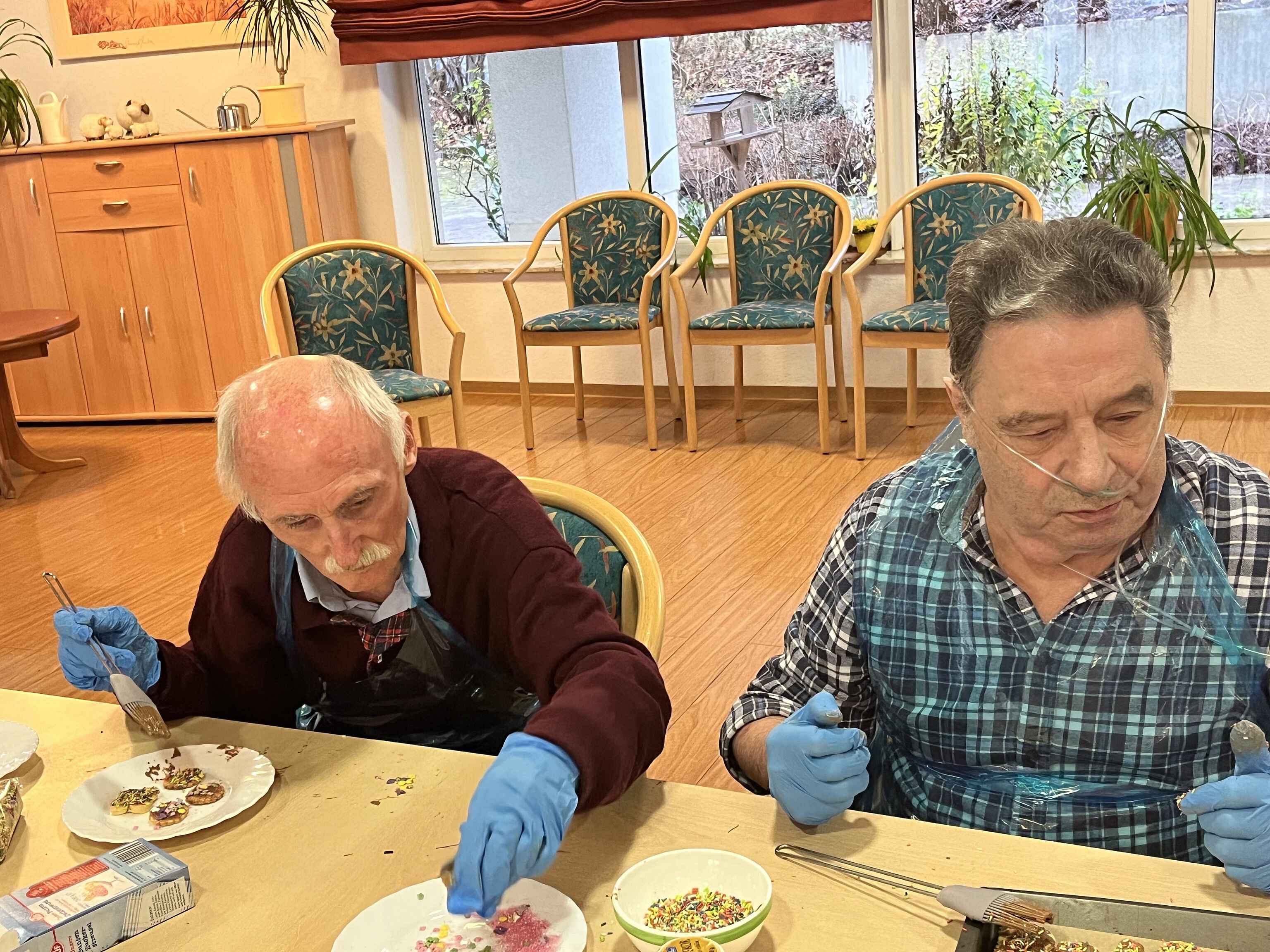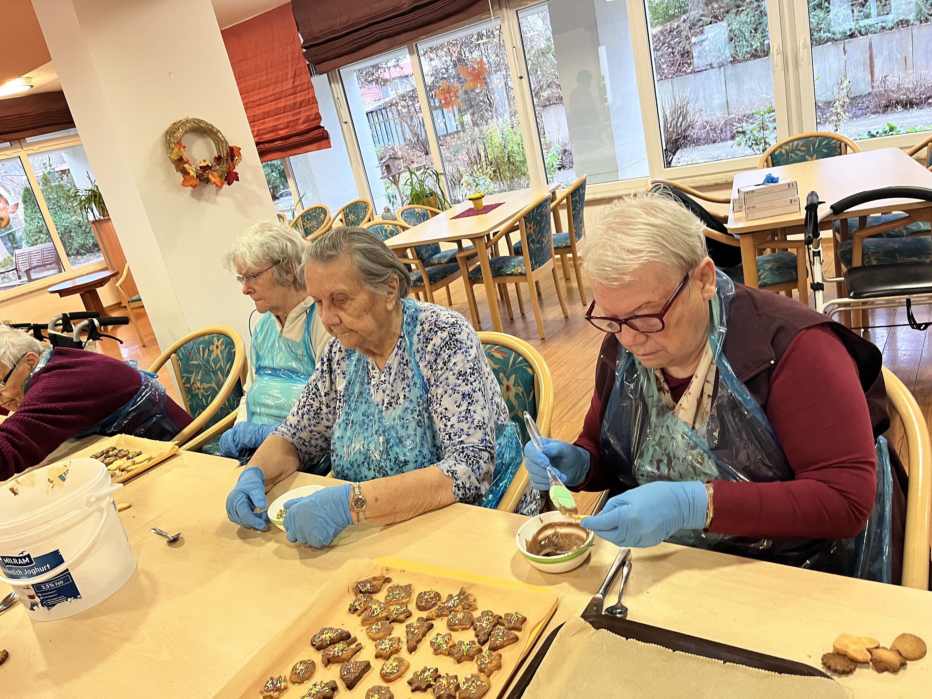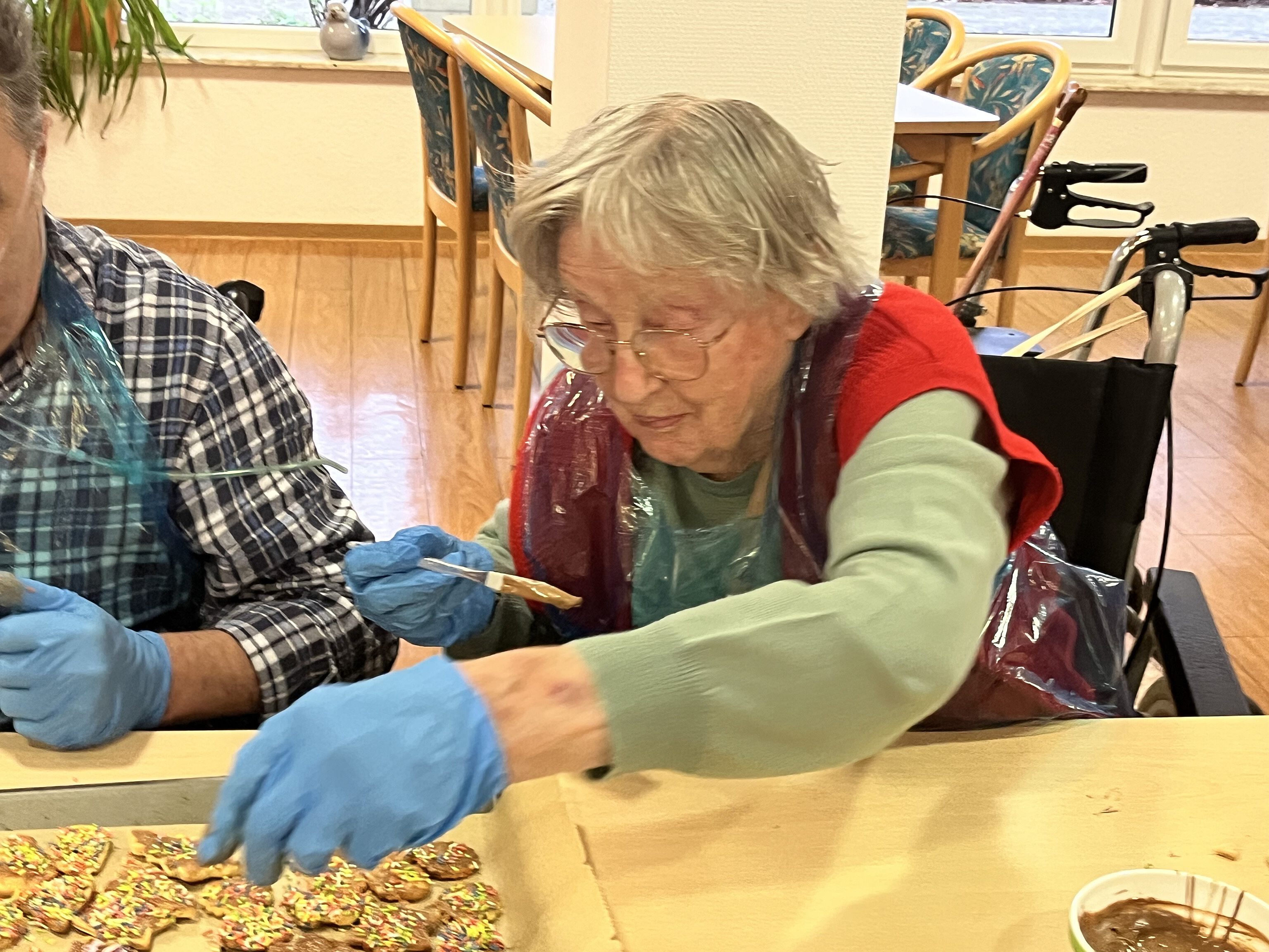 Mit Schokolade und bunten Streuseln wurden die Kekse liebevoll dekoriert – Seite an Seite mit unseren Bewohnerinnen und Bewohnern. Überall wurde gelacht, geplaudert und natürlich auch ein bisschen genascht – alle hatten jede Menge Spaß.