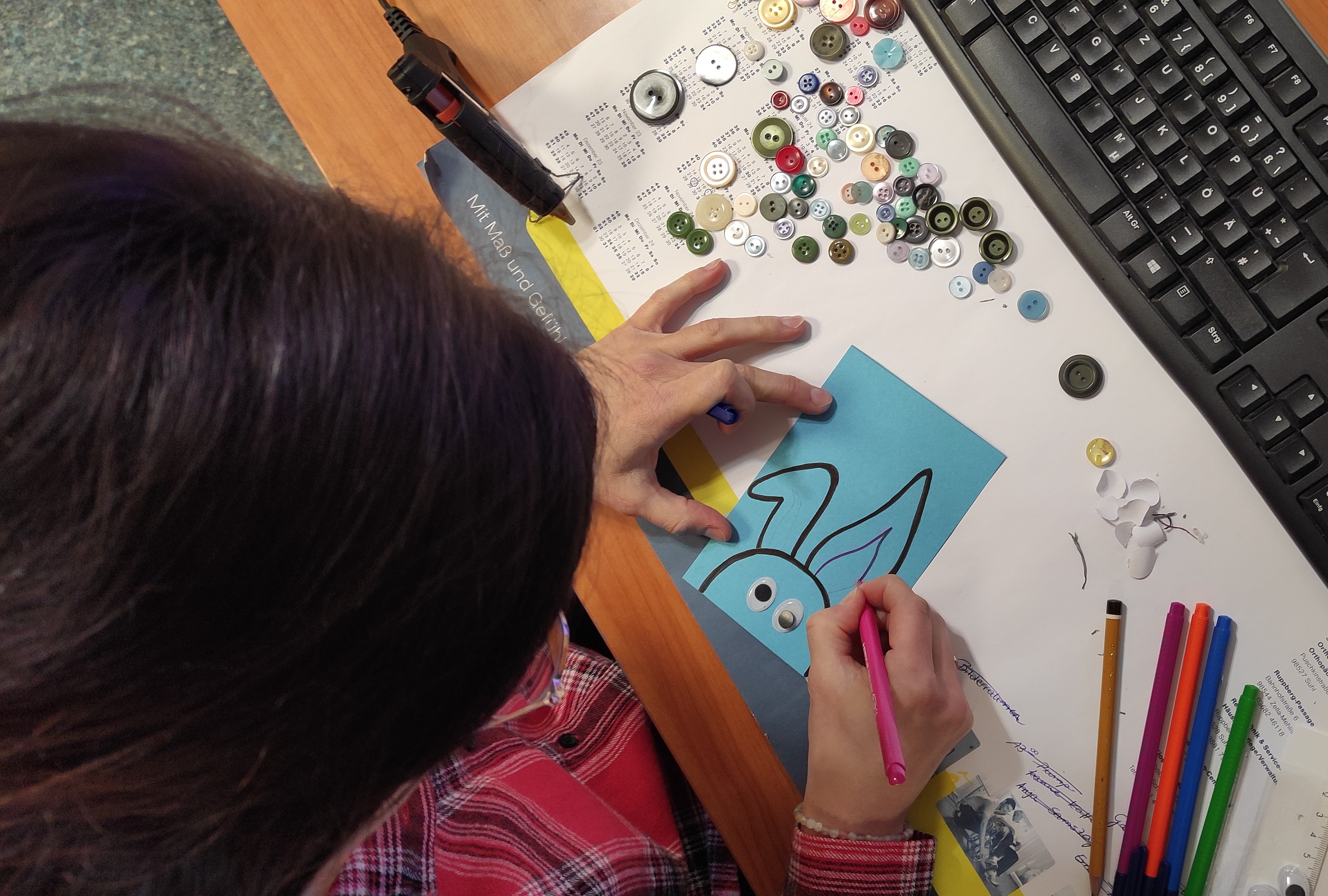 Einsamkeit ist für niemanden schön und schon gar nicht leicht zu ertragen. Aus diesem Grund kam die Idee zustande, dass man diesen Menschen mit einer Karte eine kleine Freude bereiten kann. Unter dem Motto „Gemeinsam einsam“ rief der Verein Post mit Herz e. V. dazu auf, Postkarten zu schreiben und zu versenden. Auch unser DRK Seniorenheim beteiligte sich an der Aktion und die vergangenen Tage waren im Team der Sozialtherapie von Kreativität geprägt, um den Senioren und Seniorinnen aus dem Pflegeheim DOMICIL in Hanau ein Lächeln ins Gesicht zu zaubern. Insgesamt wurden 90 Karten gebastelt und geschrieben. Im Gegenzug bekommen unsere Bewohner und Bewohnerinnen Postkarten aus anderen Pflegeeinrichtungen zugeschickt. Unsere Mitarbeiterinnen und Mitarbeiter öffnen diese gemeinsam mit den Bewohnern und Bewohnerinnen, die sich über die Post sehr freuen