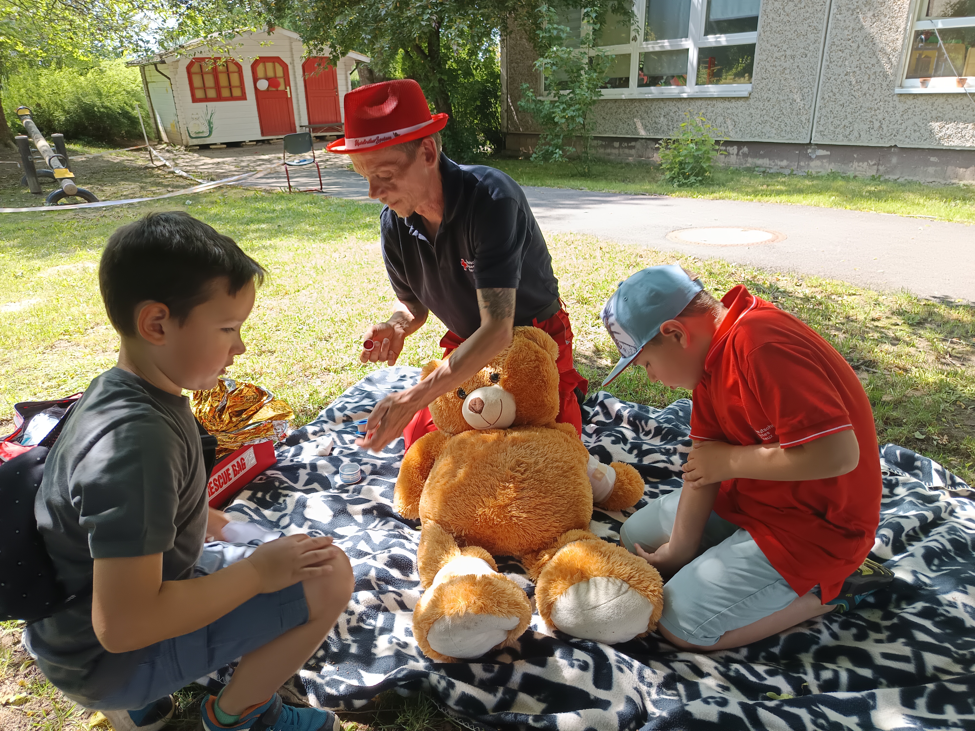 An unserer Erste-Hilfe-Station übten sie spielerisch den Umgang mit Pflaster und Verband.