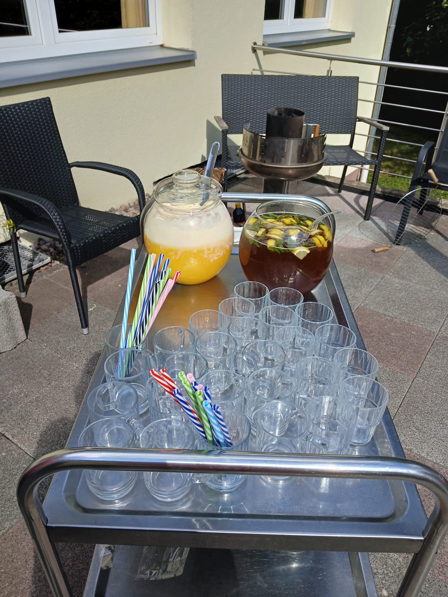 In der Zwischenzeit wurde in der Therapieküche ein selbst gemachter Kartoffelsalat vorbereitet und der Grill angezündet, worauf die „echte“ Thüringer Rostbratwurst gegrillt wurde. Ein angenehmer Bratwurstduft durchzog die „Herbstrose“ in Schleusingen und die Tagesgäste lobten das Essen in den höchsten Maßen.