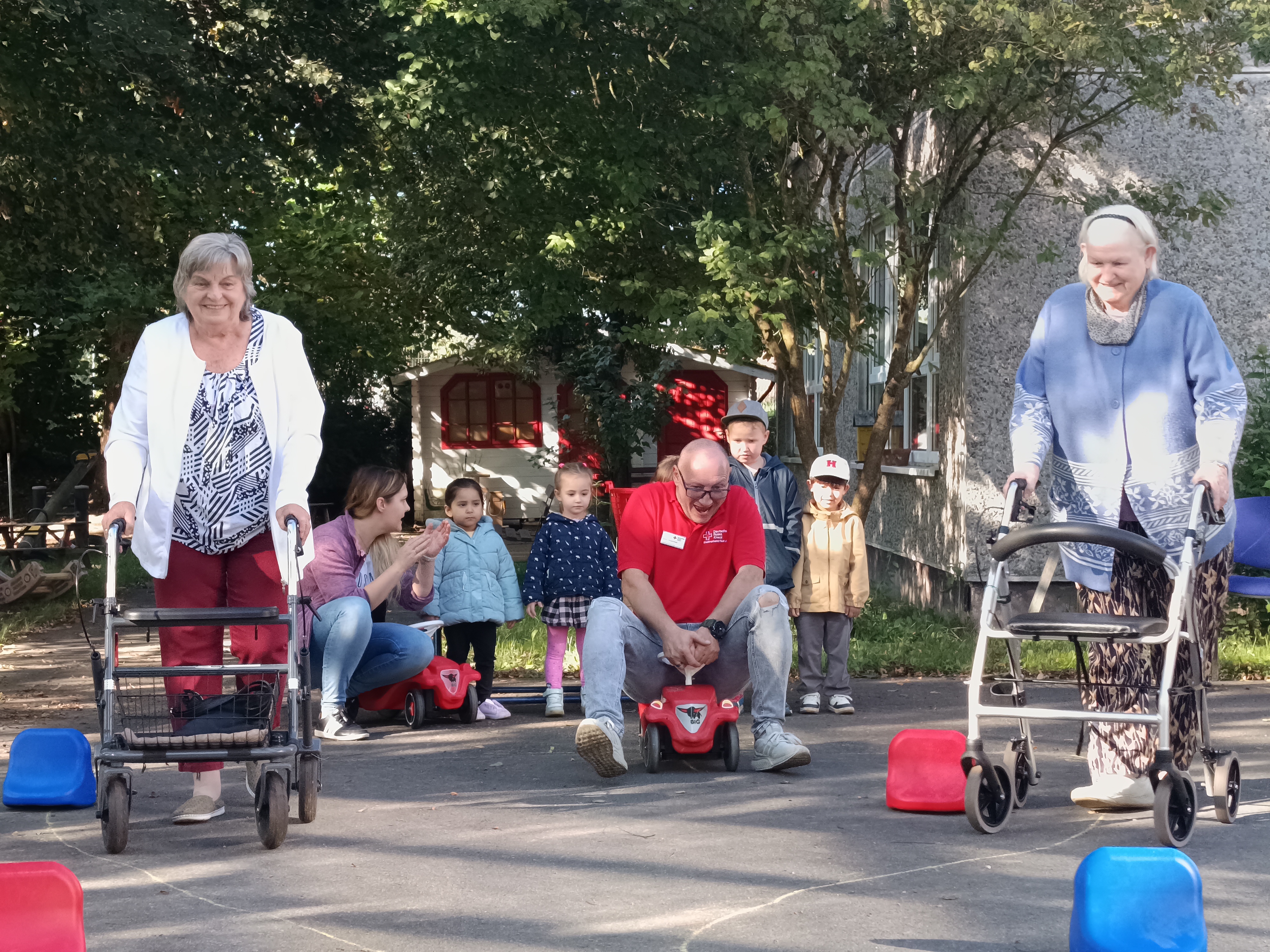 Ein besonderes Highlight: Unsere Erzieher und die Betreuer traten in einem kleinen Wettrennen gegen die Senioren an – doch die Überraschung war groß, als das Rennen ganz klar an unsere Seniorinnen und Senioren ging!