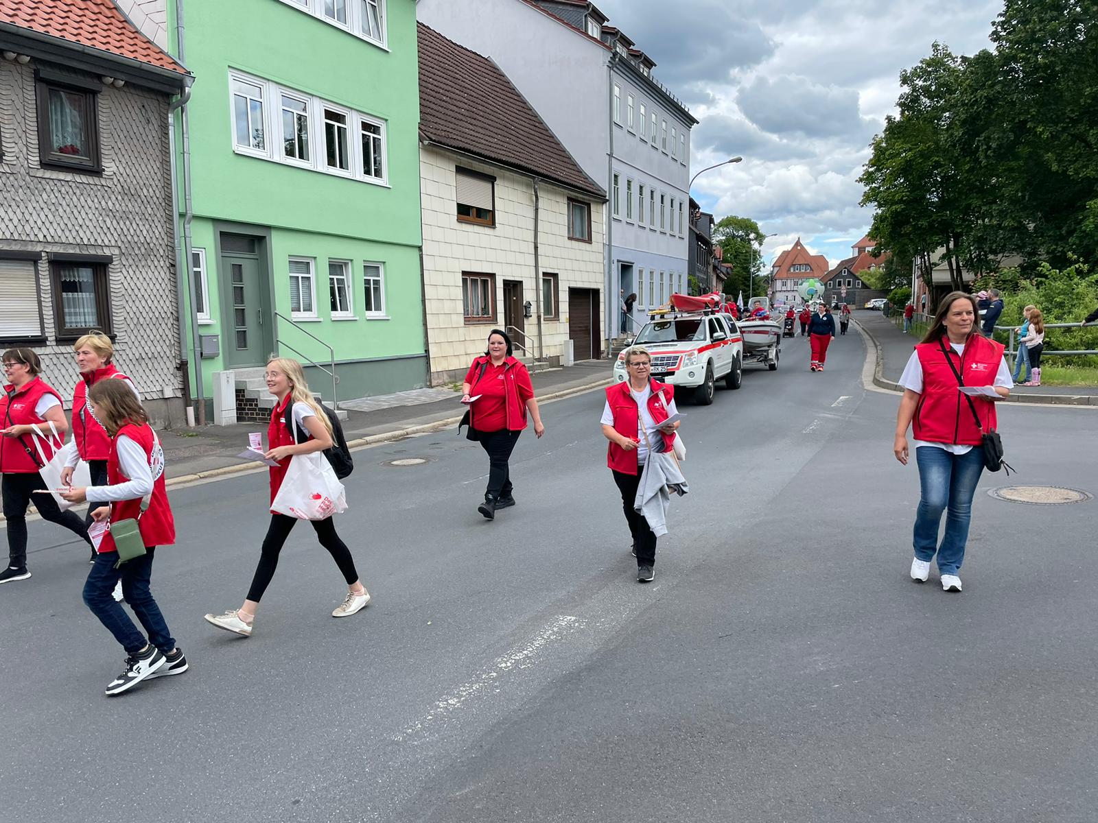 Beim diesjährigen Stadtfestumzug der Vereine am vergangenen Sonntag in Schleusingen repräsentierten Mitglieder der Wasserwacht Nahetal, Mitarbeiter der Tagespflege Herbstrose und Mitarbeiter sowie Bewohner des Seniorenheims in Zella-Mehlis den Kreisverband Suhl. Die Vielfalt und der Zusammenhalt der Gemeinschaft standen hierbei im Mittelpunkt.