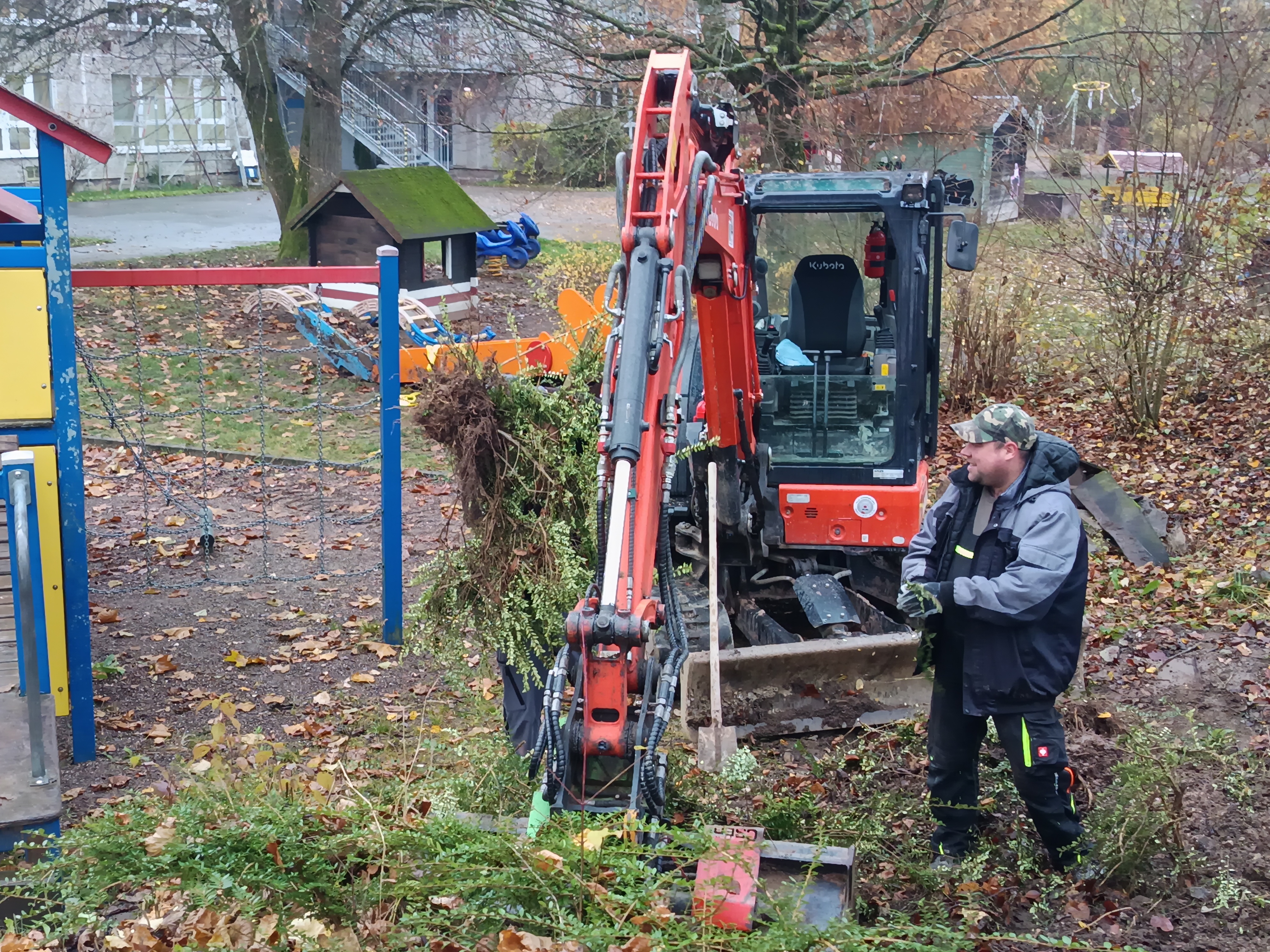 Am Samstag, den 15.11.2025, haben wir gemeinsam Hand angelegt, um den Hang rund um die Röhre in der Kita Rennsteigkobolde wieder fit zu machen!