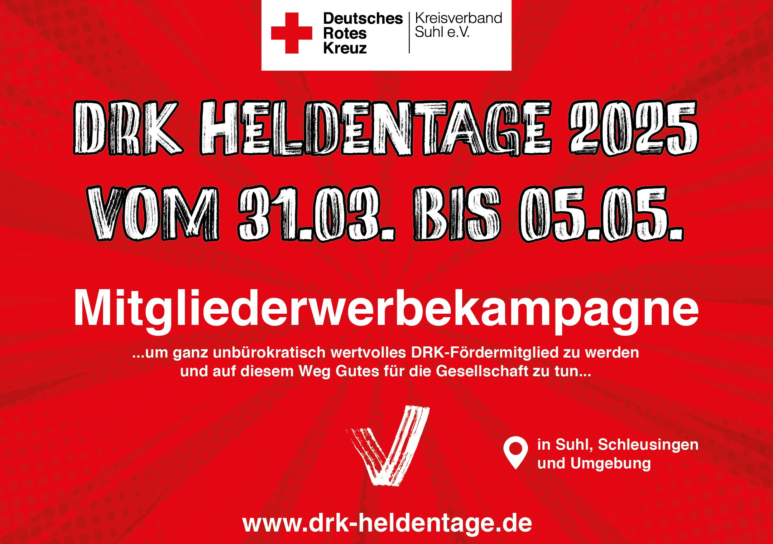 Vom 31. März bis 5. Mai 2025 finden die DRK Heldentage statt – eine einzigartige Gelegenheit, sich als Fördermitglied des Deutschen Roten Kreuzes zu engagieren und einen wertvollen Beitrag zu leisten.